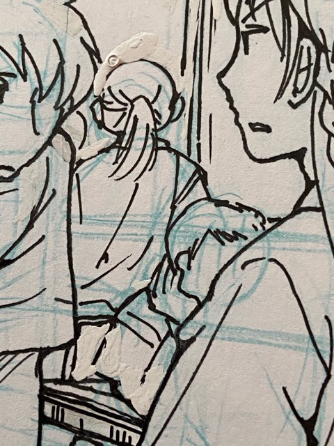 やっぱり、顎のあたりとか微妙にじわっと来てるんですよ…下書きしないで描けばにじまないんですが、下書き描いては消し描いては消し、だと、どうしてもにじむようになっちゃうんですね…。