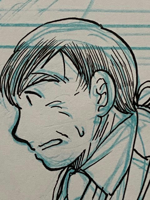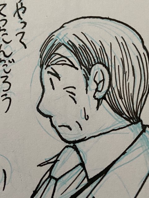 ↑こちら、8年前に描いたはいいが色々あってお蔵入りした原稿の狩谷さん(先にあげたブログ記事で描いてた漫画です)。新ペン先で描いてました。鼻の下やあごのあたり、襟元など、ジワジワしたものが出てるの、見えますでしょうか。