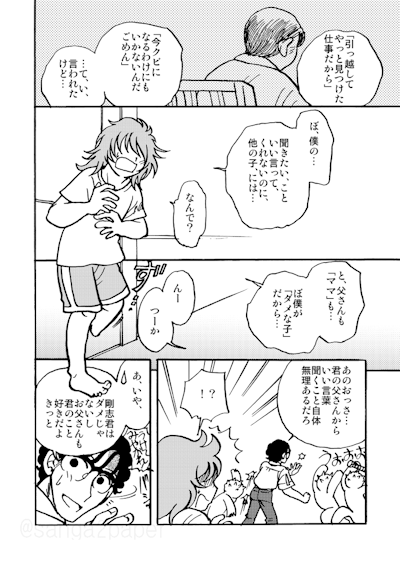 これのおかげでようやくスタート地点に立てたんだろうなと思うし、当時悩みを拗らせた末に「読んでくれええ」とお願いしたら「(にじみ出てるのが)良い」という意外な反応をくれた父に感謝しています。(ちなみに狩谷さん旧シリーズはほかにも親に読んでもらってて、アップ予定はないけど4話は母に感謝しています。女性の描き方をはじめて考えた)
