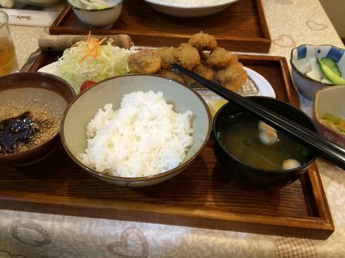 また、お惣菜を選んで食べれたり、一角にはどちらも県内産のコシヒカリと天のつぶの2種類のご飯のお釜がありまして、たぶん選べる。豪華! また来たいです。