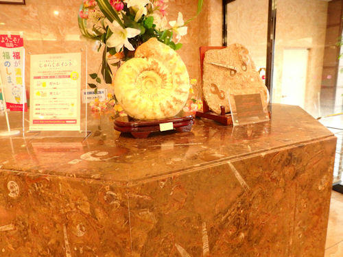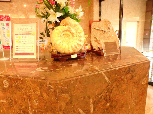 フロントに使われている大理石にはこれでもかってくらい化石が↑詰まっているのです。