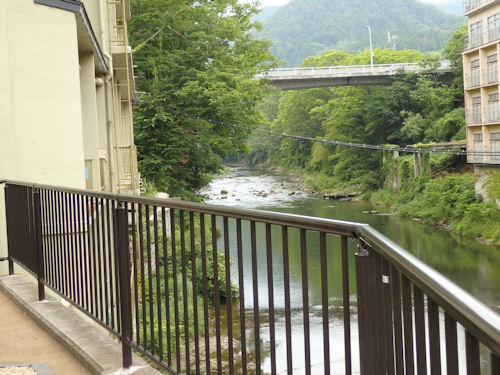 ちょっと切り立ち気味の河岸に旅館を建てているからこその不思議な造りです。