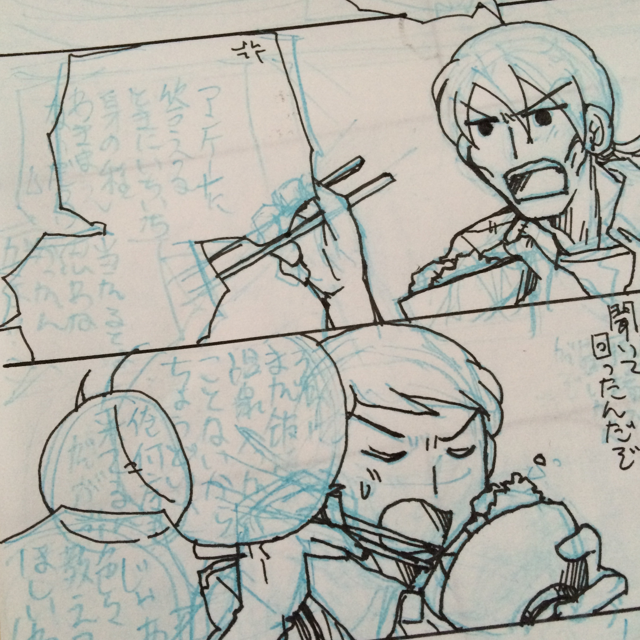 イベントに出す用の原稿(まだ線画)ではなく全然関係ない落書き漫画描いてるっていう…。