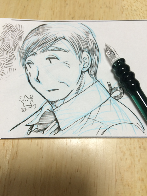 ↑試し描き狩谷さん。用紙はコピー紙。→のが今回購入したガラスペン。