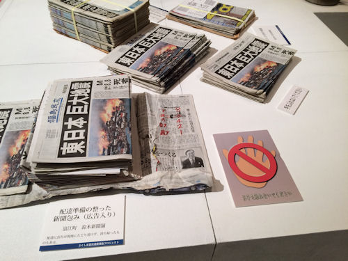 ↑浪江から南に行けなくなり配られなかった当時の新聞(よく見ると色んな地域のがある)。会場では(一部の展示をのぞき)写真撮影ができました。