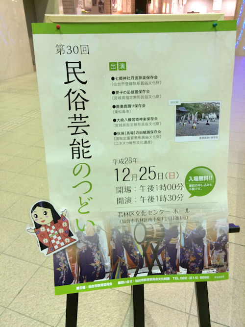 仙台市若林区文化センターでの「第30回・民俗芸能のつどい」に行きました。