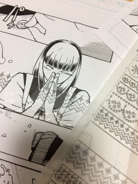 久しぶりにトーン貼ったり、小さいトーンに透明テープ貼ったり(剥がれ落ちないように)しました。