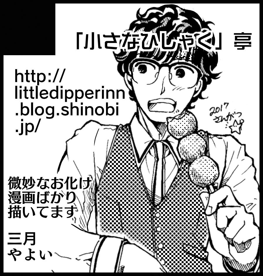 ↑今回のサークルカット。ノートにアナログ描き→スマホでスキャン→メディバンアプリで加工→ネット投稿、でやりましたが、まあなんとか印刷に耐える感じになってよかった。例によって手がでかい(汗)。逆に揚げいも小さく描きすぎた。