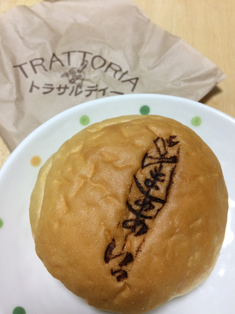 他にも、ローソンが一件「オーソン」になってたり(作中でそういうコンビニが出てくるのです)、巡回バスが走ってたり、アーケードの一部が杜王町になってたり、そこにジョジョにちなんだイタ飯屋さんの名前を冠した屋台が出てたり(パン買った↓)、まあとにかく色々やってますので、展示以外にも見るものたくさんですよ! 皆様これ全部周ってらっしゃるのかしら…すごい、タフすぎる!