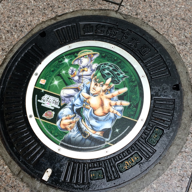 ジョジョ展が開催されている9/10まで、ジョジョのキャラクターが描いてあるマンホールが市内に点在してます。やはり4部メインなのですが、一人だけ3部からのキャラクターがいます(花京院典明。花京院という地名が市内にあるのです)(3部の主人公・空条承太郎もありますが、4部の服装なので4部でカウントしました…)。私まだコンプリートしてないんだよね…全部見てみたい…。