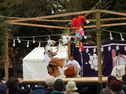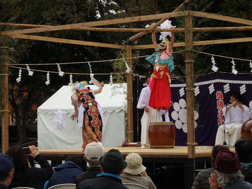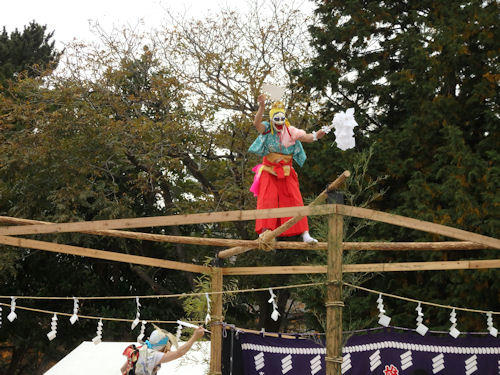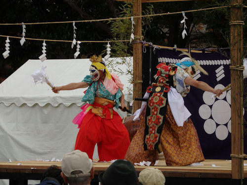 仙台市歴史民俗博物館サイトhttp://www.sendai-c.ed.jp/~bunkazai/~rekimin/寒さとの戦いになりつつあった午後の演目の一つ、宮城県石巻市の「雄勝法印神楽」の一幕・「日本武尊(やまとたけるのみこと)」。