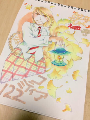 ↑今回の看板絵。鉛筆線画にコピック。水彩っぽくできた。