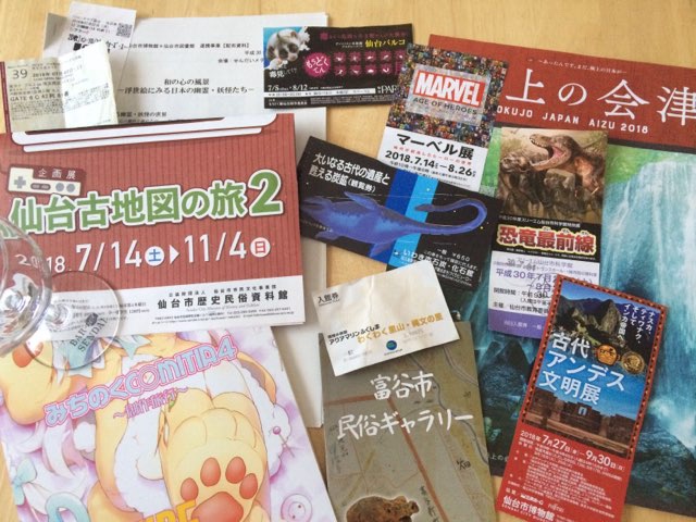 というわけで、7/2~8/2までの間に行った博物館・イベント等の入場券(入場券がなかったり紛失したりしたものは別のもので代用してあります)をざっと並べてみました。