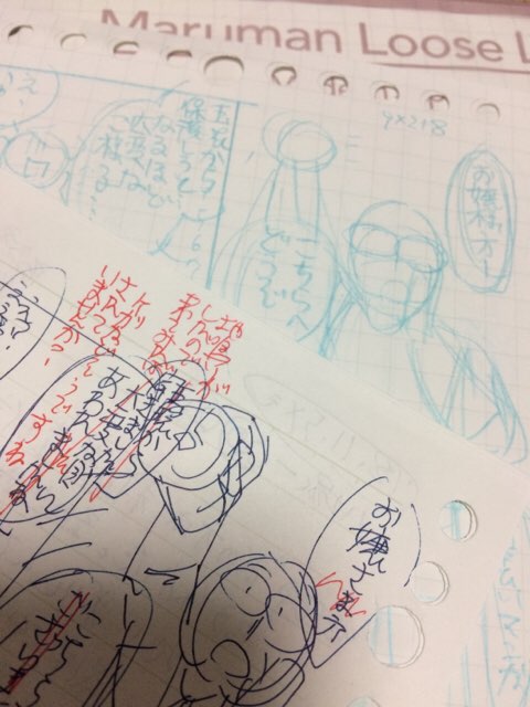 チラシ漫画「八塚一伝説」ネーム練ってます。