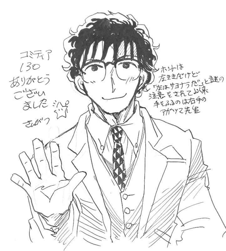 でも↑の、家に帰ってから描いたアガツマ先生、線がガタガタでヒネくれた状況をあえて描いてる感じ、やっぱり冷静じゃなかったんだろうなあと思います。