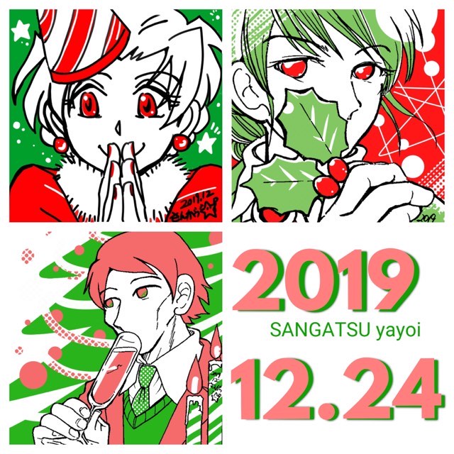 ↑は、ポイピクで行われてる「ポイピククリスマス」という企画に出した絵です。あれこれ試行錯誤した関係で3枚もできたので、ついでだからとまとめてみました。赤・緑・白(黒は線画のみOK)の制限で色を塗るのは、なかなか楽しいです。
