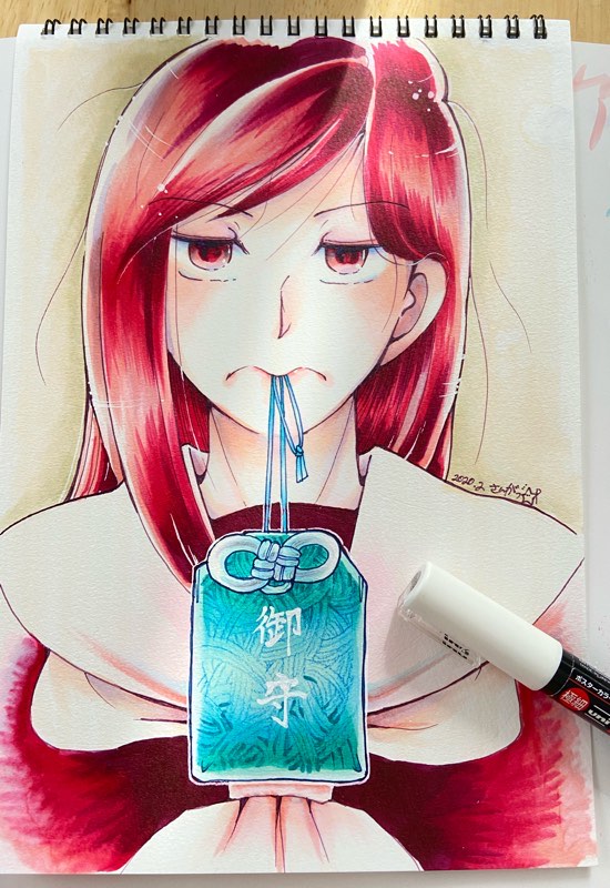 新刊表紙絵原画。本当はちょっと蛍光色っぽかったんですよ…。