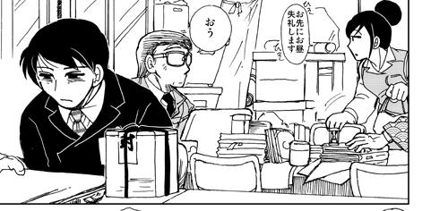 当時は主線をシグノ0.28で描いていたので、「 ばく」から急に絵の雰囲気が変わってしまいましたが、センセの元気がない感が出てて、まあ結果オーライかなと。
