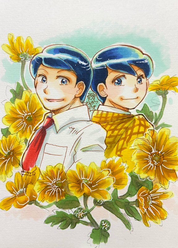 菊の花は悔やまれる出来ですが、色塗りと青瀬の顔(というか描き分け…設定上はもう倍くらい年齢違うからね…?)がうまくいったなと思うのでヘッダーにしてみました。