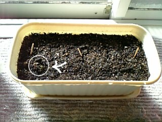 見えにくいですが、以前うえたラディッシュの芽が出てきました。