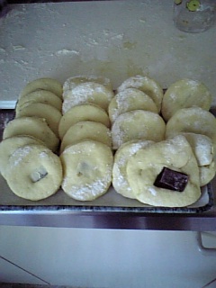 焼き方の都合で薄めに、またチョコレートは中にくるみました。