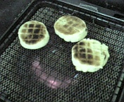 以前、別の生地でやってみた、グリルでも焼いてみる。こちらは溶けました(泣)。でろーっと網から落ちた…なんでだよ~。