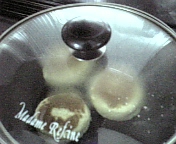 こちらも以前やったことがあります。よく膨らみますが、フライパンが温まりすぎて表面だけ焼ける、という状態になりがちです。こちらも焦がさないよう細心の注意を払って返します。10分ちょいくらい。