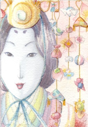 でも、「おひなさまをテーマに絵を描く」のは抵抗がなかったので、描いてみる。