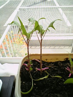 でも、苗はそれほど大きくならず、まだ摘心(苗の成長点を切って、それ以上伸びないようにすること)してないんですが、全然伸びません。肥料足りない?