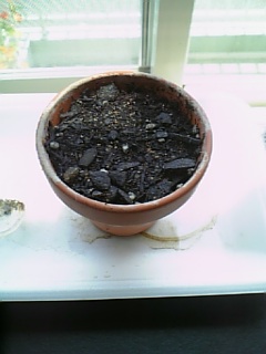 サボテンのはにー君が使っていた鉢に、ラデッシュを蒔いてみました。秋まで待てよという気もするのですが。