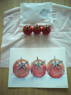 トマトの上のは保冷剤。暑いから