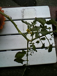 実になったのはそのままとして(?)これ折っちゃうと、下のほう全然葉っぱなくなってしまう…うーん、黄色くなった葉は早めに取ってるんですが、とりすぎたのか葉が少なくなってきた(汗)新しい葉も少ないし。もう摘心してるけど新たな芽が出るのはいいことなのかしらん。