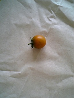赤くなる前に落ちてしまったミニトマト。