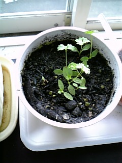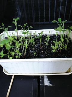 まあ、以前蒔いたときに使った土だから、あんまり育たないだろう、カイワレ代わりに食べてしまおう、と考えてたんですが、意外に芽がたくさん出ました。うーむ。