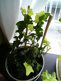 レタス、ほうれん草、アイビー、園芸関連話として、昨日買ったキャベツの話。