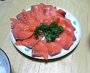 いただいたスモークサーモンにパセリをトッピングしてみました。