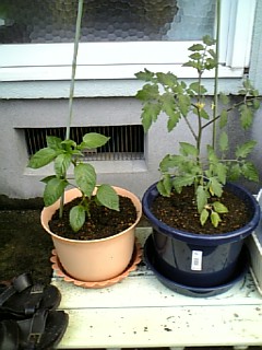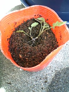 トマトのついでにピーマンも植え替えてみました。本ではこちらは「暖かくなったら」とあったんで。暖かいかなと。午前中は雨降ってたけど…。
