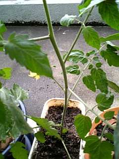 ミニトマト。 全身入りきらない…。 以前、根っこを出してたわき芽です。 ポットで育ててたんですが、花が咲いてもなかなか植え替えできませんでした。 今回、なんとなく雨がぱらつく中、空いてるミニプランターに移植。 にしても、すっごくひょろひょろになってしまったものだなあ。 支柱もないから不安定。しかたなく、ミニトマトとピーマンの間に無理やり詰めることで、なんとか立っている状態です。うーん、これはこれで風通しが悪そうだから、なんか考えないと。 予想外のおまけといえ、育つといいなあ。