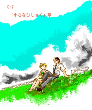 当日看板用イラスト。黄色めの紙に印刷するので、ちょっと違う雰囲気かもしれませんが、それ以前に、なんか目立たないというか暗い絵ですみません…。