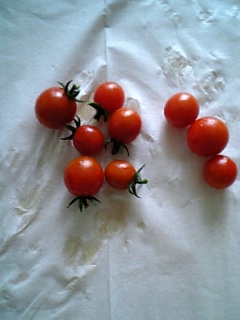 旦那は、お弁当にトマトを入れるのを好まない(職場のレンジでお弁当を温めて食べてるので、トマトがぬくくなるのがイヤなんだそうだ)ので、だいたい朝に食べてます。