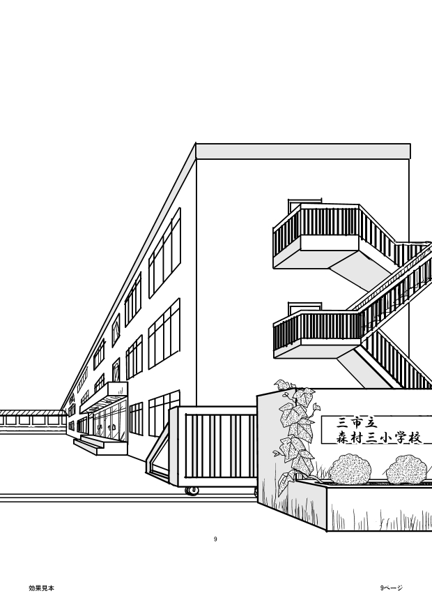 今回の漫画用にフルデジタルで作った背景。小学校(縮小してます)。