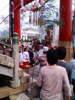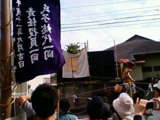 (まかれた葉生姜や扇子は、清めの意味もあるみたいですが、縁起物です。自分のところにきたら、もらっちゃいます。つーか、みなさん手を上げて求めたりしてました。餅まきの風景に似てる)