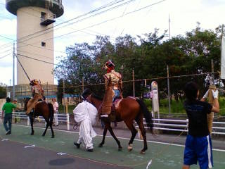 本当は昨日もやってたし、他にも色々行事があるんですが(9月1日から色々神事がある)、休みと体力の都合で、今回流鏑馬だけでも、と一人で行って見ました。しかも、またカメラ持ってかないで(苦笑)。よって、全編携帯写真でお送りします。