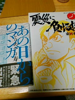 ↑コミティアで見つけたチャリティ同人誌(他にもあっただろうけど見つけられず)と、旦那が秋葉原で買ってきたマンガ