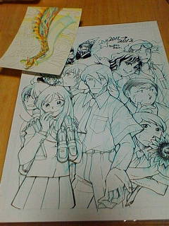 年末に載せてる、今年描いた漫画と来年描く予定の漫画の集合絵描いてなかったな、とあわてて描く。