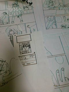 でも周りに散らばってる原稿は狩谷さんのです…新ペン先、やっぱりにじむのがストレスだけど、インクがすぐ乾くので直すのも書き足すのも楽でいつもより進行が早い気がする。あくまで気がする、だけです(苦笑)。
