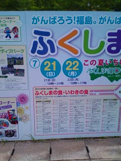 7/22に、いわきグリーンスタジアムで、プロ野球オールスターゲームの第三戦が開催されるのですが、それに合わせて今日明日、21世紀の森公園で開催されてる「ふくしま復興祭」に行ってきました。