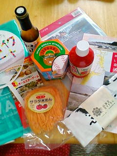 これにさらに北海道のザンギ、いわき市のジャンボカジキメンチ、カステラ、インゲン(農産物も結構売ってたので…トマトもあんなに一袋が大きくなければ買ったんだが)も買ったけど…うん、なんつーか、よく買ったなホント。