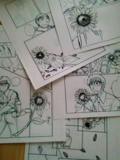 予定では、8月からパソコンでの作業に入れるはずだったんだけど、↑の写真見てわかるとおり、背景がまだ入ってないっていう、しかもまだペン入れしてないページが10ページほど…うああああ(汗