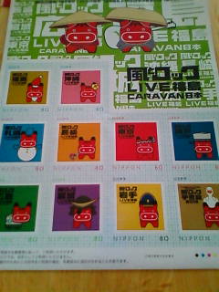 去年末からぐるっと全国まわってライブをやった地方にちなんだ恰好したキャラがそれぞれ切手になってます。シールがあれば欲しいと思ってたんだけど、まさか切手になってるとは思わなんだ。